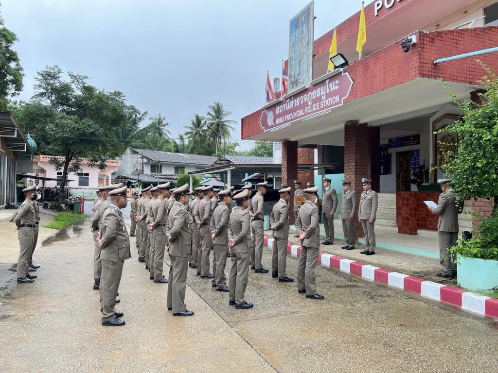 โดยมีกิจกรรมประกอบด้วย เคารพธงชาติ พิธีเปิดกรวย อ่านสารของ ผบ.ตร. ให้โอวาท กล่าวคำสัตย์ปฏิญาณตน และอุดมคติตำรวจ เพื่อแสดงออกถึงความจงรักภักดีต่อพระมหากษัตริย์ สมเด็จพระนางเจ้าฯ พระบรมราชินี พระบรมวงศานุวงศ์ และการเป็นข้าราชการตำรวจที่ดี พิธีสักการะศาลพระภูมิเจ้าที่ และพิธีทางศาสนา ณ สถานีตำรวจภูธรมูโนะ