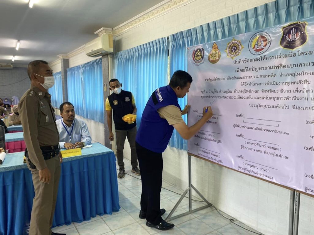 พ.ต.อ.สุธาเวชช์ ธารีไทย ผกก.สภ.มูโนะ พร้อมด้วย พ.ต.ท.อาลี วาเด็ง รอง ผกก.ป.สภ.มูโนะ,พ.ต.ท.มณฑล หนูรอด สว.อก.สภ.มูโนะ และชุดปฏิบัติการชุมชนยั่งยืน สภ.มูโนะ ร่วมเปิดพิธี โครงการดำเนินงานชุมชนยั่งยืน เพื่อแก้ไขปัญหายาเสพติดแบบครบวงจร ตามยุทธศาสตร์ชาติ ร่วมกับส่วนราชการในพื้นที่,ผู้นำศาสนา,ผู้นำท้องถิ่น โดยมี นาย อนิรุทธ บัวอ่อน นายอำเภอสุไหงโก-ลก เป็นประธาน ณ ห้องประชุมโรงเรียนบ้านปูโป๊ะ ต.มูโนะ อ.สุไหงโก-ลก จว.นราธิวาส
