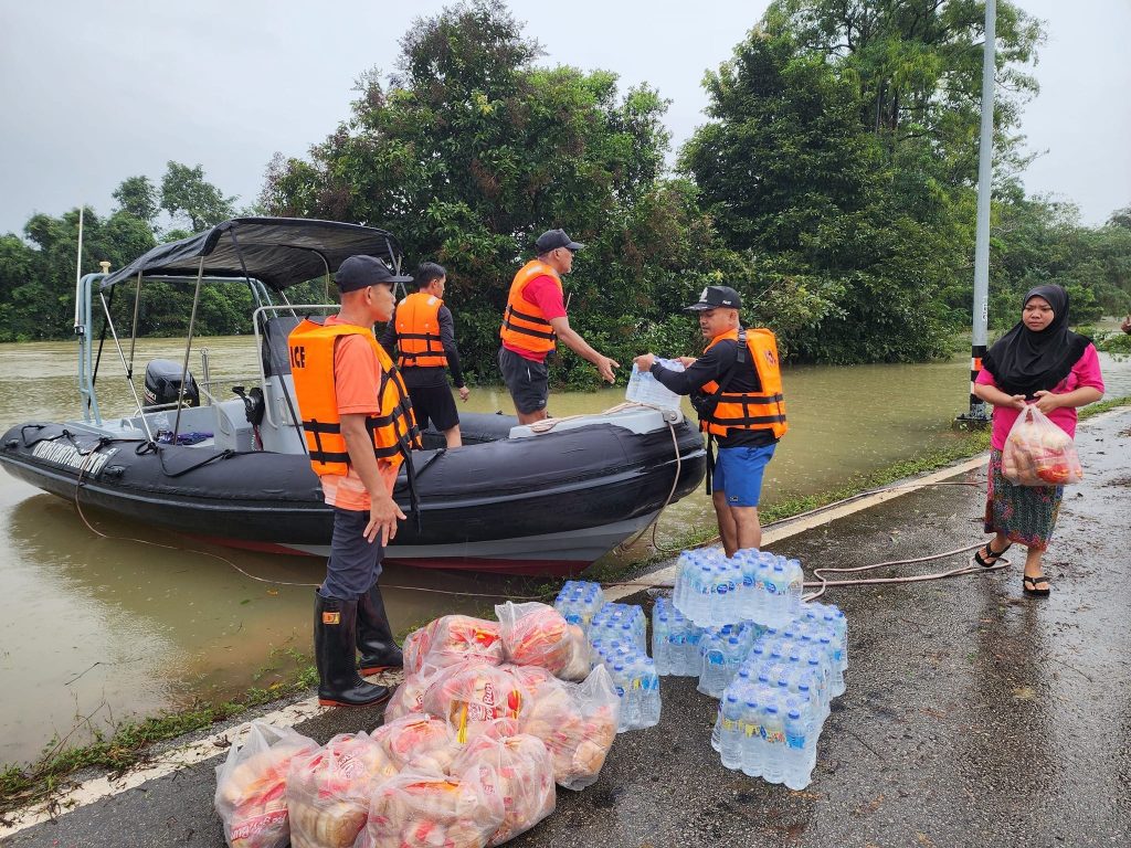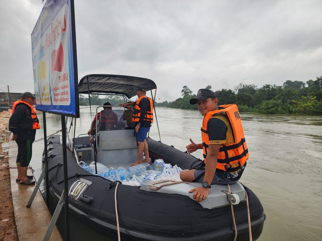 ร่วม ว.4 ด้วยเรือตรวจการณ์ตำรวจ ออกช่วยเหลือผู้ประสบภัย ทางน้ำ พร้อมทั้งได้นำ น้ำเปล่า , อาหารแห้ง ยารักษาโรค นมผงเด็กเล็กที่ ร้องขอ มอบให้กับพี่น้องประชาชนผู้ที่ประสบภัยในพื้นที่ น้ำท่วม