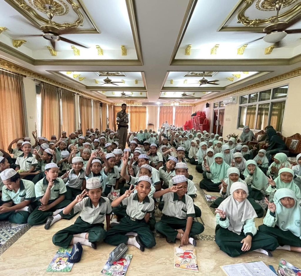 -ประชาสัมพันธ์วินัยจราจร พรบ.จราจรทางบท การแข่งรถในทาง ให้กับเด็กนักเรียนชั้น ป.5 ณ โรงเรียนดารุลฟุรกอน ม.1 ต.มูโนะ อ.สุไหงโกลก จว.นราธิวาส