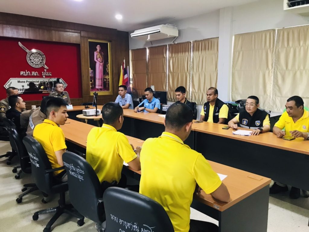 พ.ต.อ.บัญญัติ วงษ์สุวรรณ ผกก.สภ.มูโนะ พร้อมด้วย พ.ต.ท.อาลี วาเด็ง รอง ผกก.ป.สภ.มูโนะ และข้าราชการตำรวจทุกแผนกงาน