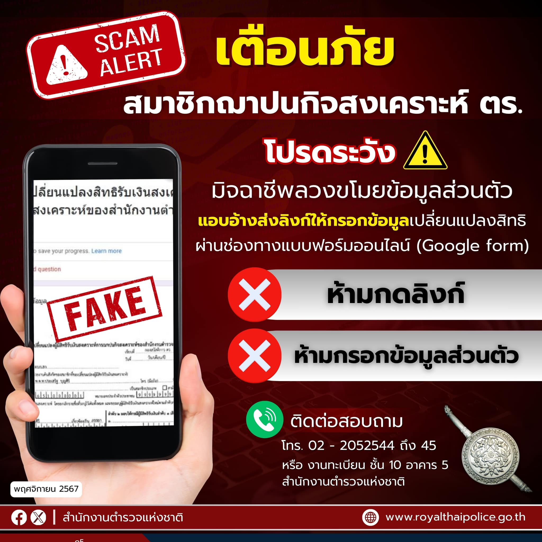 แจ้งเตือนสมาชิกฌาปนกิจสงเคราะห์ ตร.โปรดระวัง ‼️มิจฯ แอบอ้างส่งลิงก์ ลวงให้กรอกข้อมูลส่วนตัว อ้างกรอก