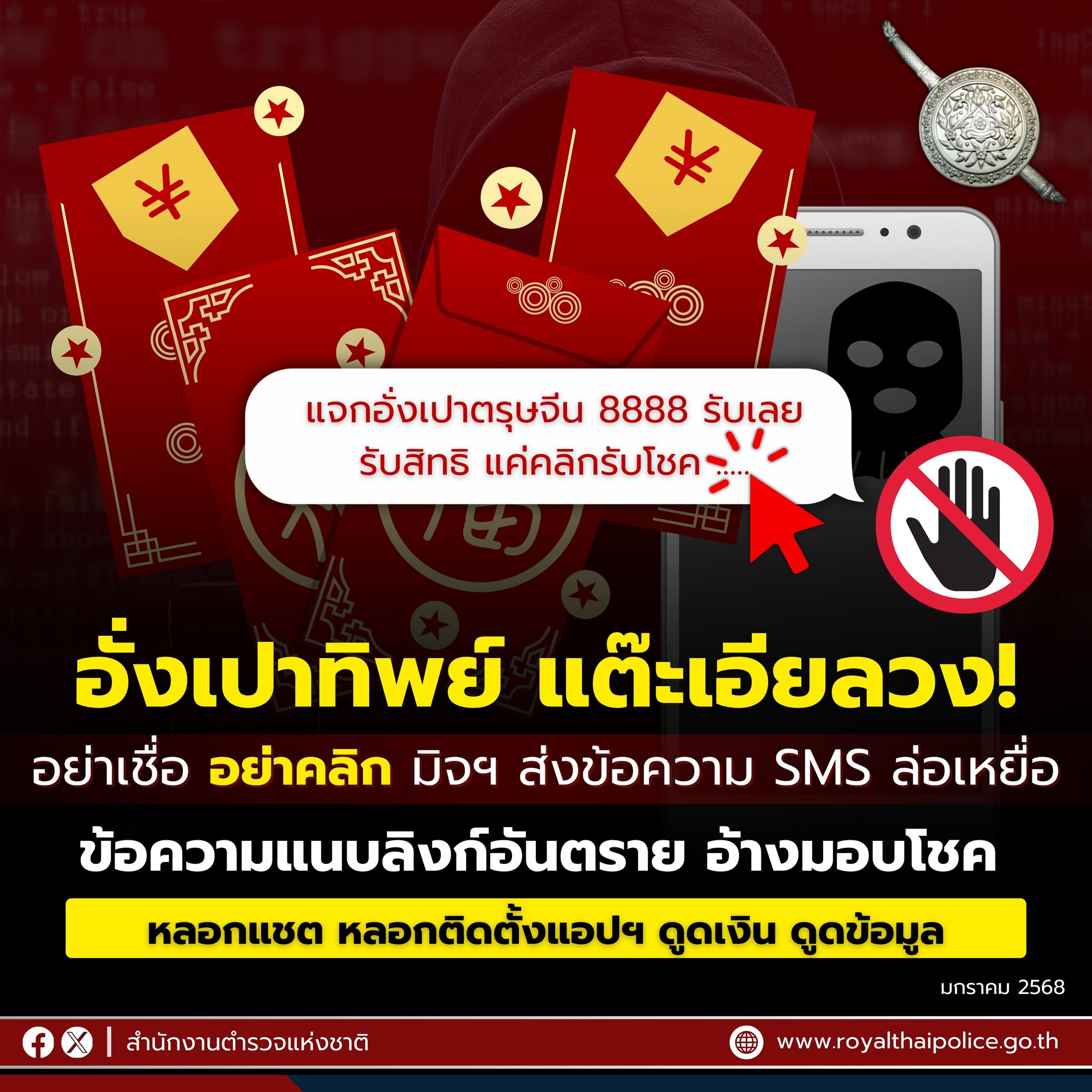 ระวัง!! อั่งเปาทิพย์ แต๊ะเอียลวง #ตรุษจีน มุกนี้กำลังมา ส่งข้อความ SMS ลวงว่าโชคดี ให้คลิกรับอั่งเปา