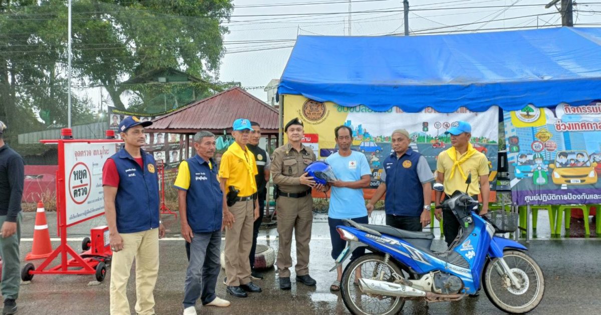 ร่วมทำกิจกรรมจิตอาสาจราจร รณรงค์การขับขี่ปลอดภัย สวมหมวกนิรภัย เพื่อลดอุบัติเหตุจราจรทางบก ในช่วงเทศกาลปีใหม่ 2568“ โดยมอบหมวกนิรภัยที่ได้รับจากสำนักงานตำรวจแห่งชาติ